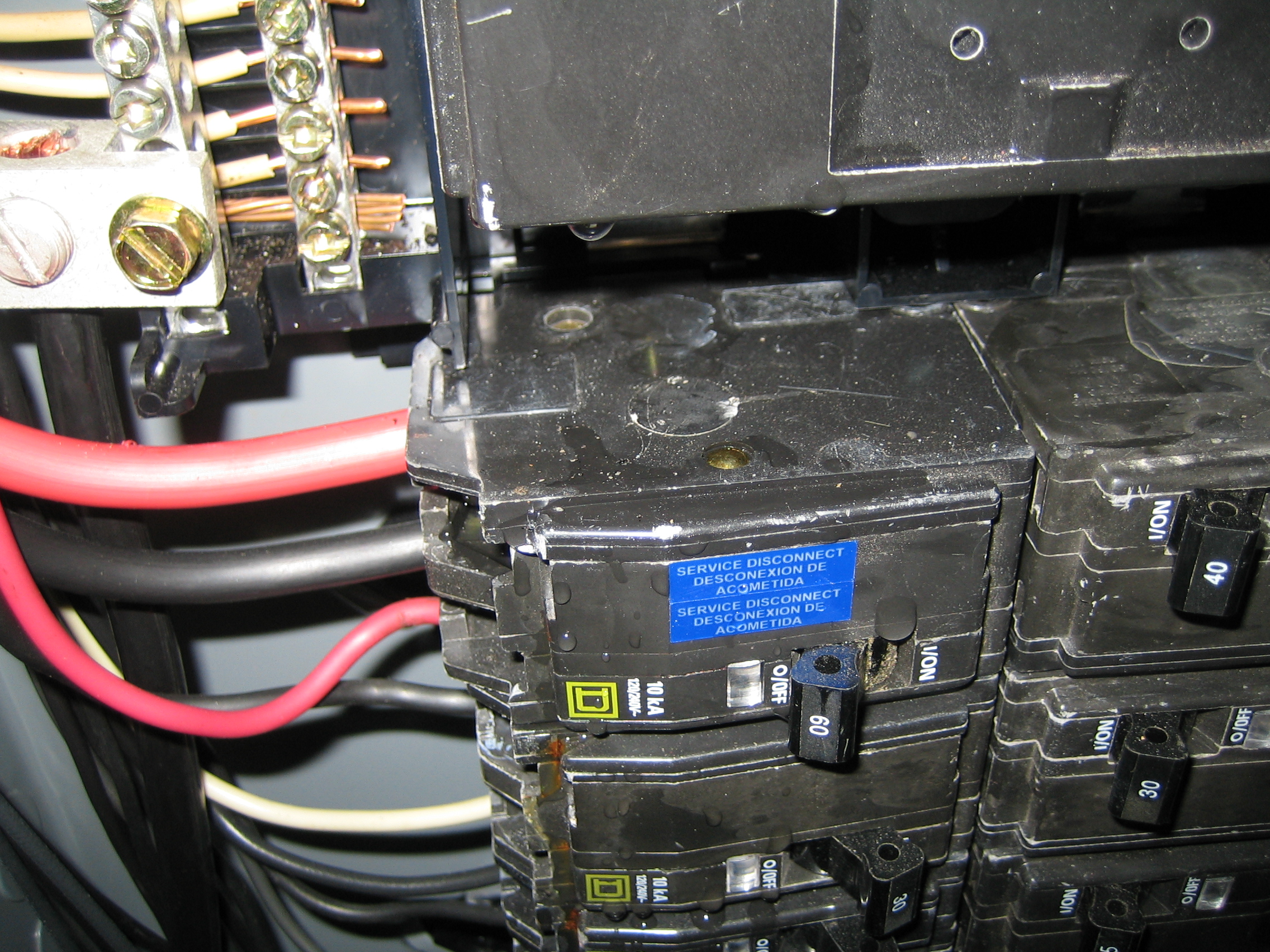 e) Water in Service Panel